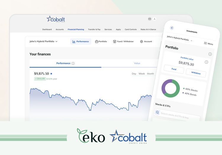 Cobalt Blue Investments is Cobalt Credit Union's branded digital investing platform, built on Eko's technology and designed to make investing accessible, approachable, and aligned with the values Cobalt members already trust.